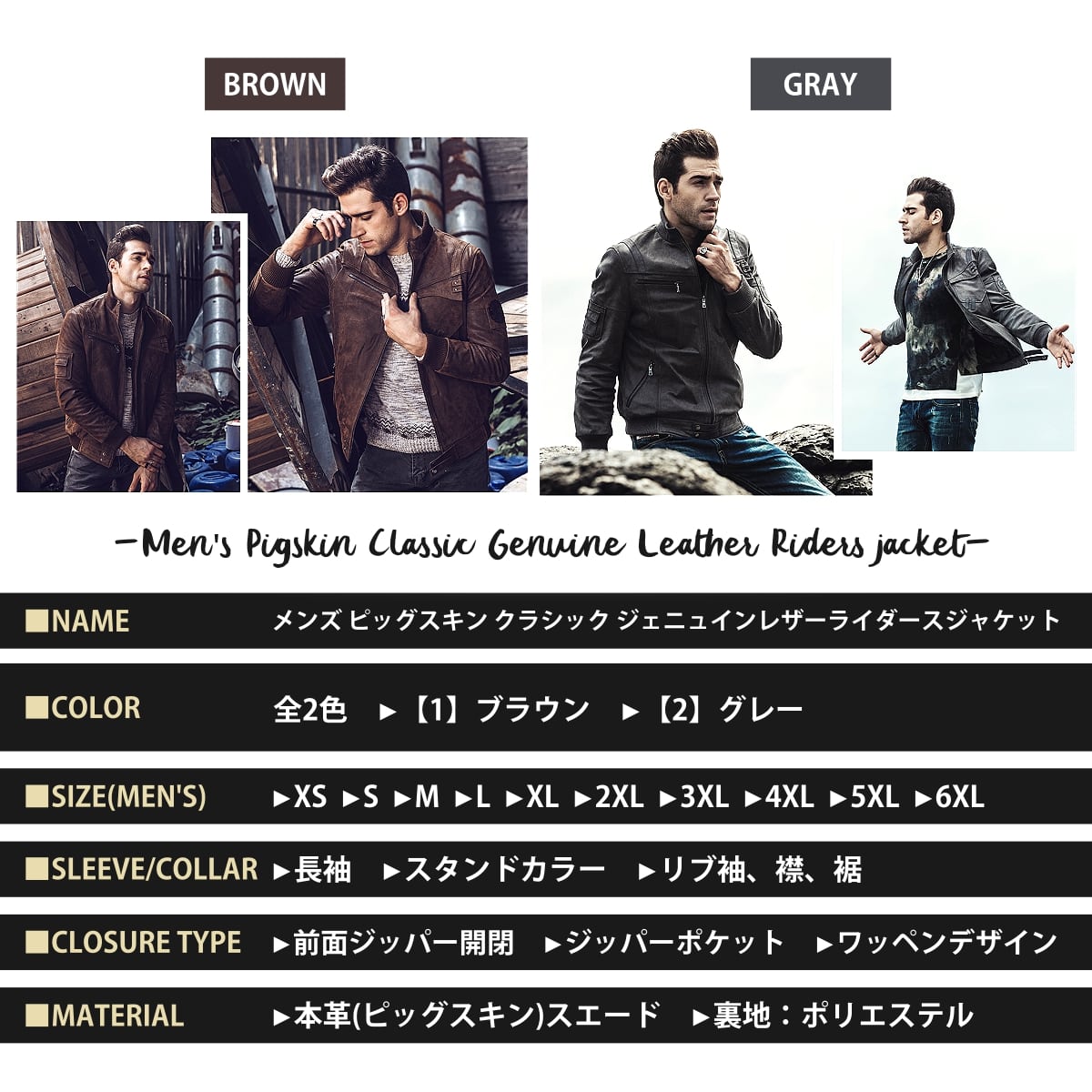 【送料無料!】全2色! 10サイズ! [Men's Pigskin Classic Genuine Leather Riders Jacket] メンズ ピッグスキン クラシック ジェニュインレザー ライダースジャケット! 本革 豚革 ボンバージャケット フライトジャケット スエード コート アウター バイクに!