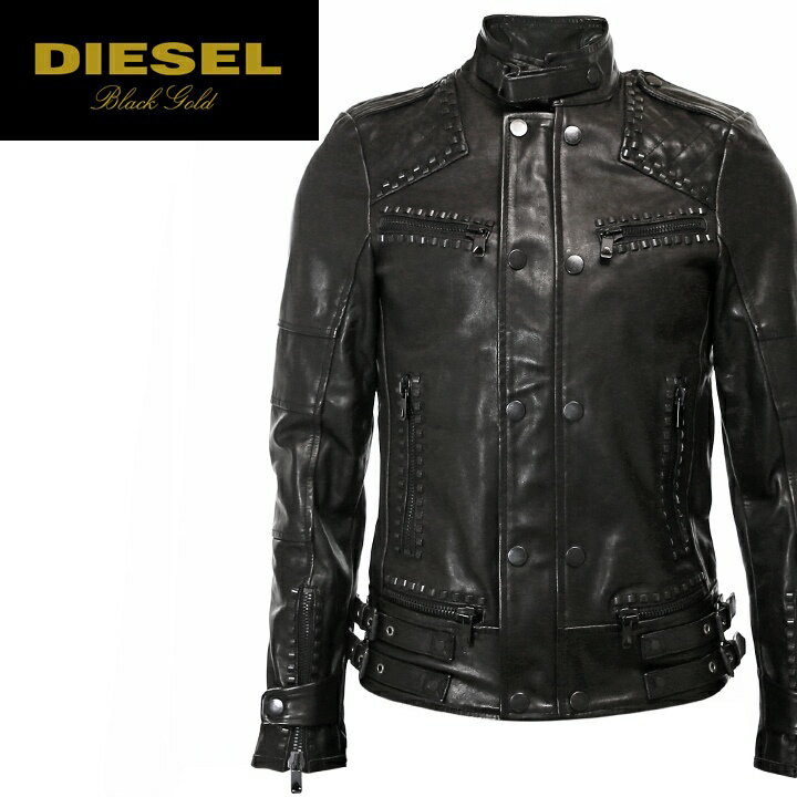■DIESEL BLACK GOLD ディーゼル ブラックゴールド メンズ■メタル装飾 牛革 本革 オールレザージャケット シングルライダースジャケット【LESTUDS】【サイズ44〜48】【ブラック】die-m-o-81-431 《メーカー希望小売価格348,700円》