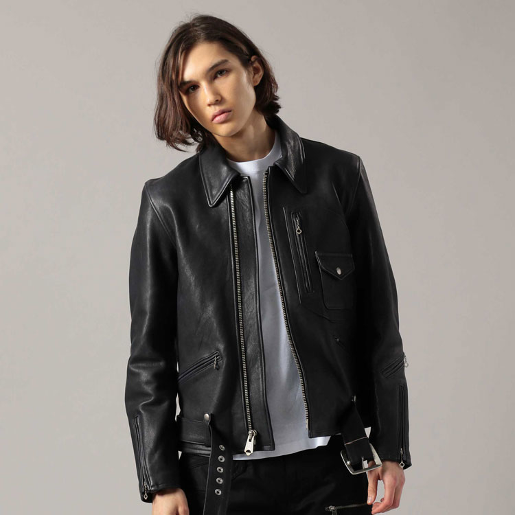 国産ラムレザーシングルライダースジャケット/全1色【細身 タイト ブラック 黒 S M L カジュアル ロック 春 2020】