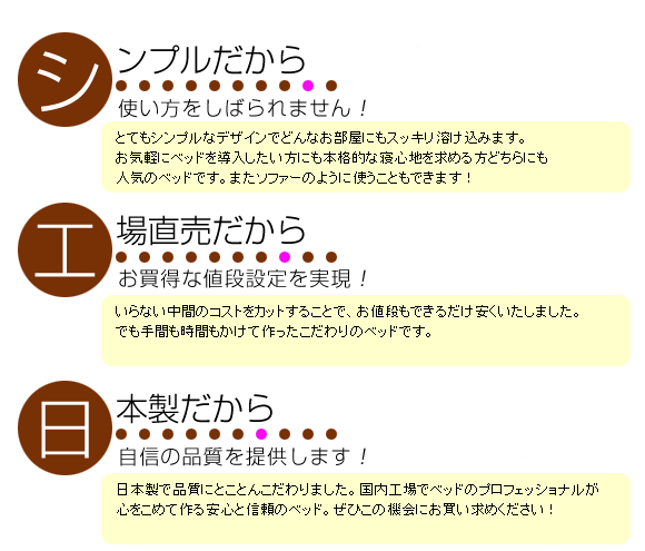 某有名人気店で6万台以上売った 伝説のマットレスベッドを当店でも販売開始しました! 商品情報 材質 はり地:綿100% 中身:スプリング・スプリング数/504個 ウレタンフォーム/フェルト/木枠 脚:天然木/4本 コイル線径 かため/2.0mm(約36kg) ややかため/1.8mm(約34kg) やわらかめ/1.6mm(約32kg) サイズ(cm) W900×L1950×H370mm ※ベッドの高さ:マット部250mm+木脚120mm=370mm カラー ・生成(iv) ・ブルー(bu) ・イエロー(yl) ・レッド(rd) ・ブラック(bk) ・ライトブラウン(lb) ・グリーン(gn) ・オレンジ(or) 生産国 日本 備考 ●組み立て式 配送について ・各商品により、配送業者が異なります。
